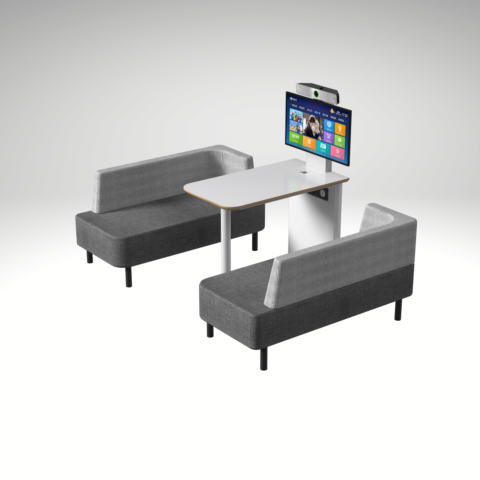 שולחן מרכזי כולל מתקן לתליית מסך | 2 ספות מרופדות
