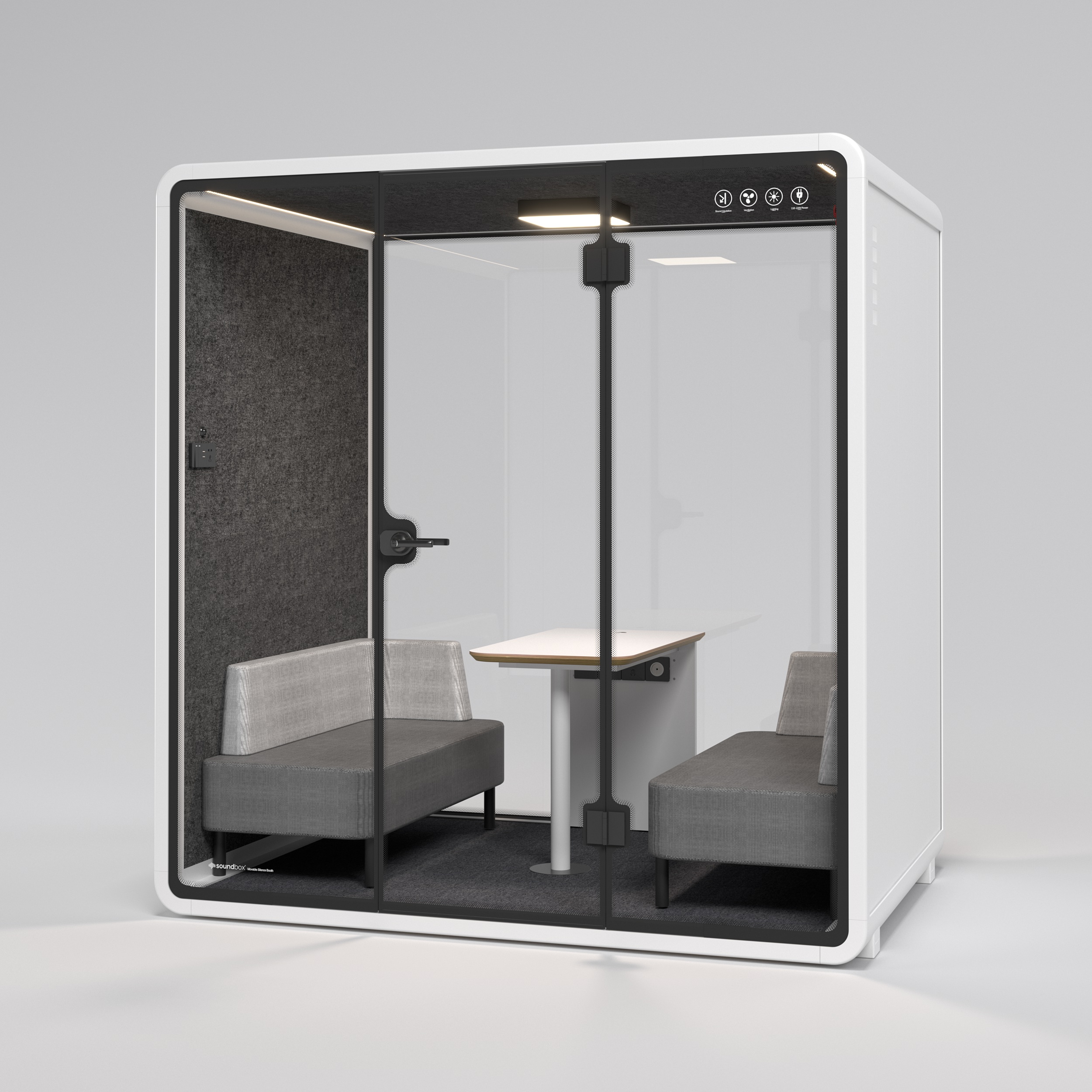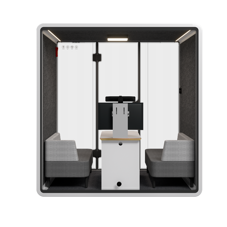 התא משלב חומרים אקוסטיים מתקדמים, תאורה פנימית נעימה ומערכת אוורור שקטה, ומאפשר סביבת עבודה נוחה לפגישות קצרות או עבודה משותפת.