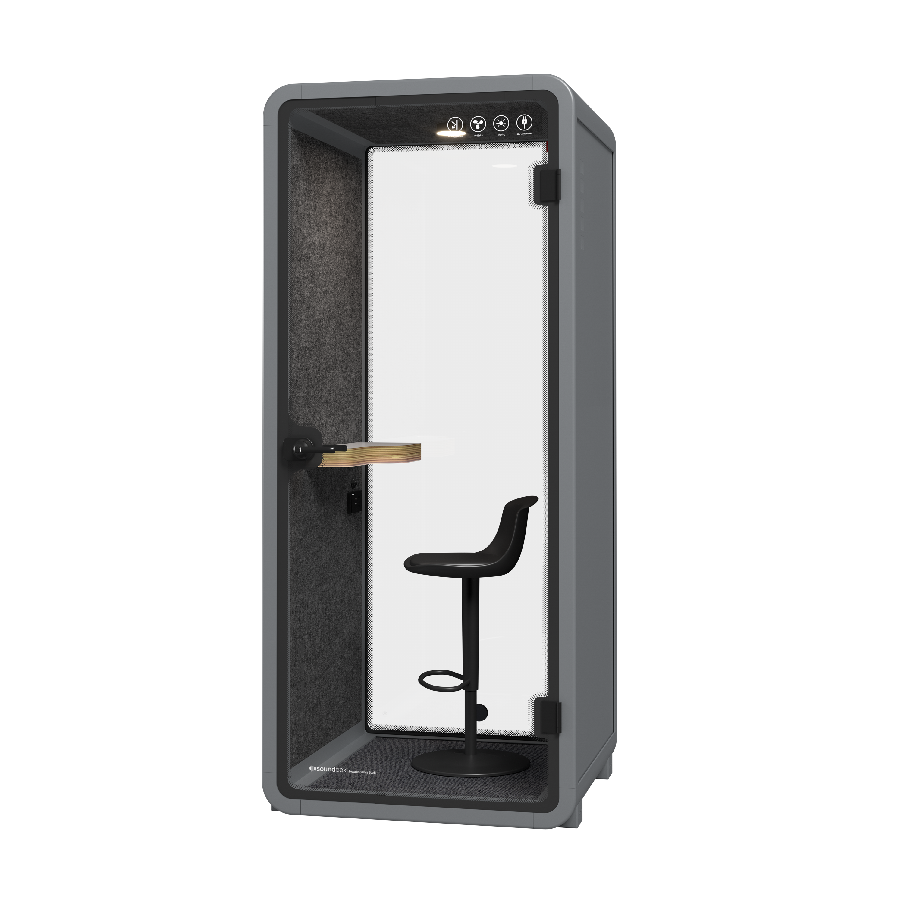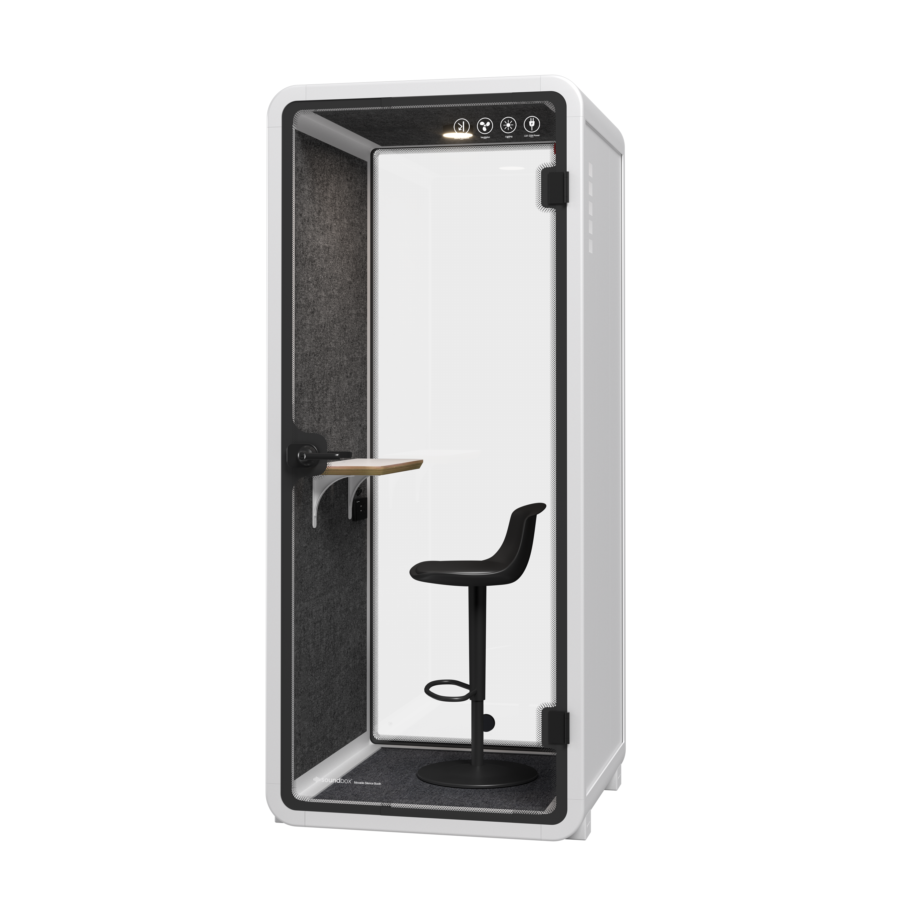 דגם SR-S הוא תא אקוסטי קומפקטי למשתמש יחיד, המיועד לשיחות טלפון, שיחות וידאו ועבודה ממוקדת בתוך סביבת משרד פתוחה. התא האקוסטי מספק בידוד מרעשי הסביבה עד 28 dB ומאפשר עבודה שקטה ופרטית.