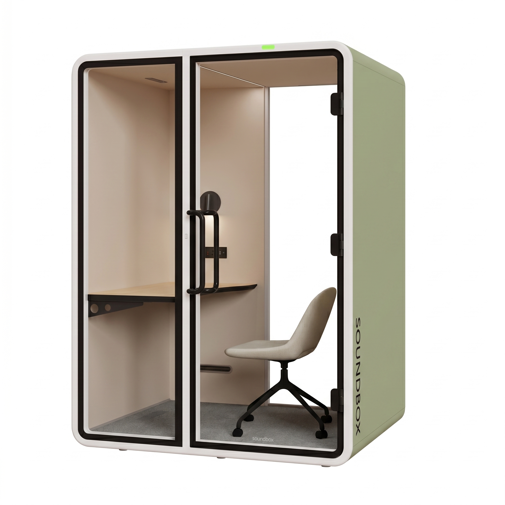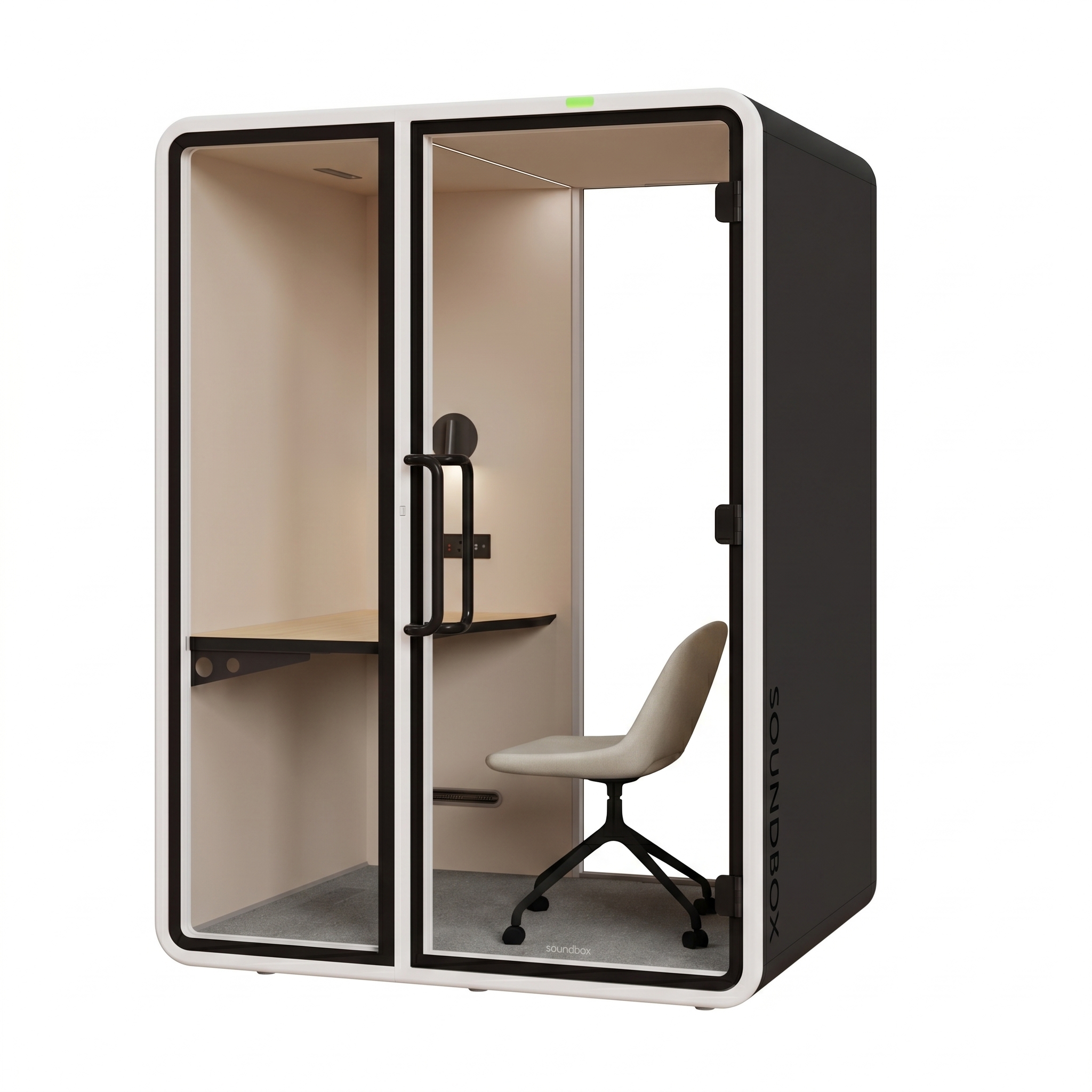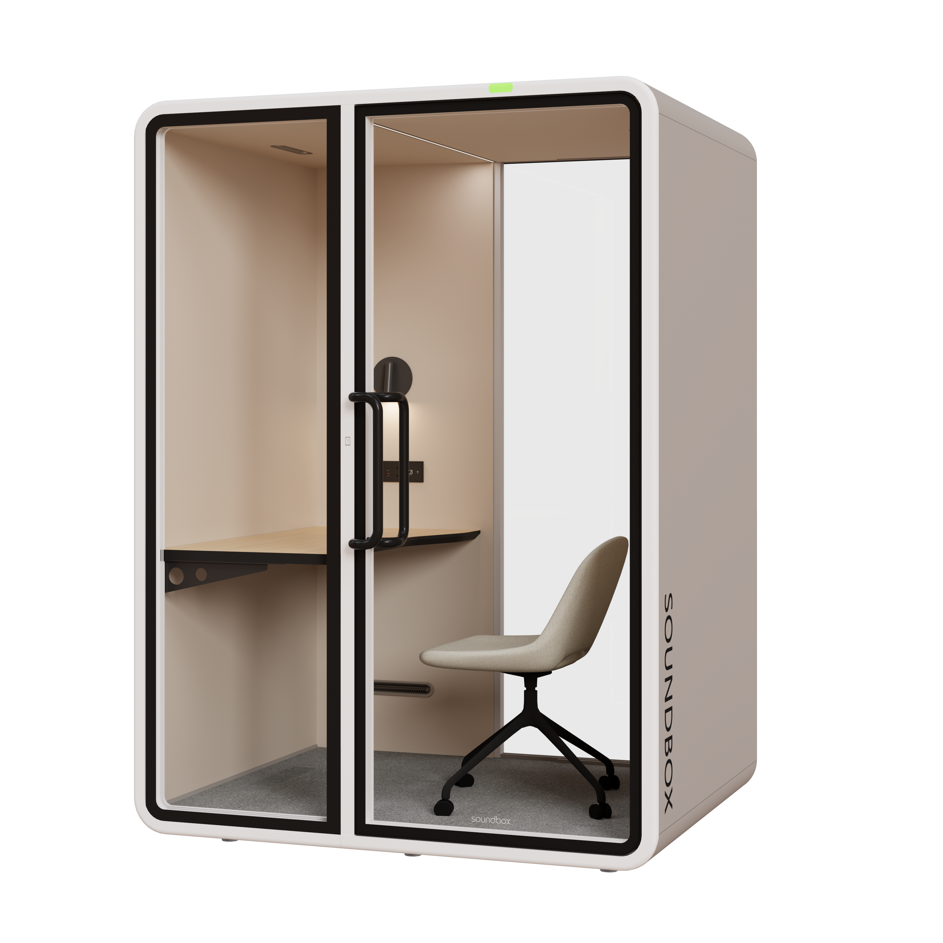 VRT M1 הוא תא אקוסטי חכם המשמש כעמדת עבודה מרווחת ליחיד עבור שיחות ועבודה ממוקדת בתוך החלל הכללי. התא מספק הפחתת רעש של כ-30 dB ומאפשר יצירת סביבה שקטה ופרטית עבור המשתמש. התא מתוכנן בגישה מינימליסטית מוקפדת, המבנה בעל הפינות המעוגלות יוצר מראה נקי ומדויק המשתלב באופן טבעי בכל חלל. התא קומפקטי אך אינו צפוף, באמצעות חומרי גמר בהירים וטקסטורות מאוזנות, והשילוב בין משטחים אטומים ושקופים יוצר איזון בין פרטיות אקוסטית לבין קשר ויזואלי לסביבה. חלל הפנים בעל מערכת אוורור מתקדמת המייצרת זרימת אוויר רציפה, מאפשר עבודה נוחה לאורך זמן. הריהוט הארגונומי מותאם למשתמש יחיד ,תוך שמירה על נוחות ופוקוס.