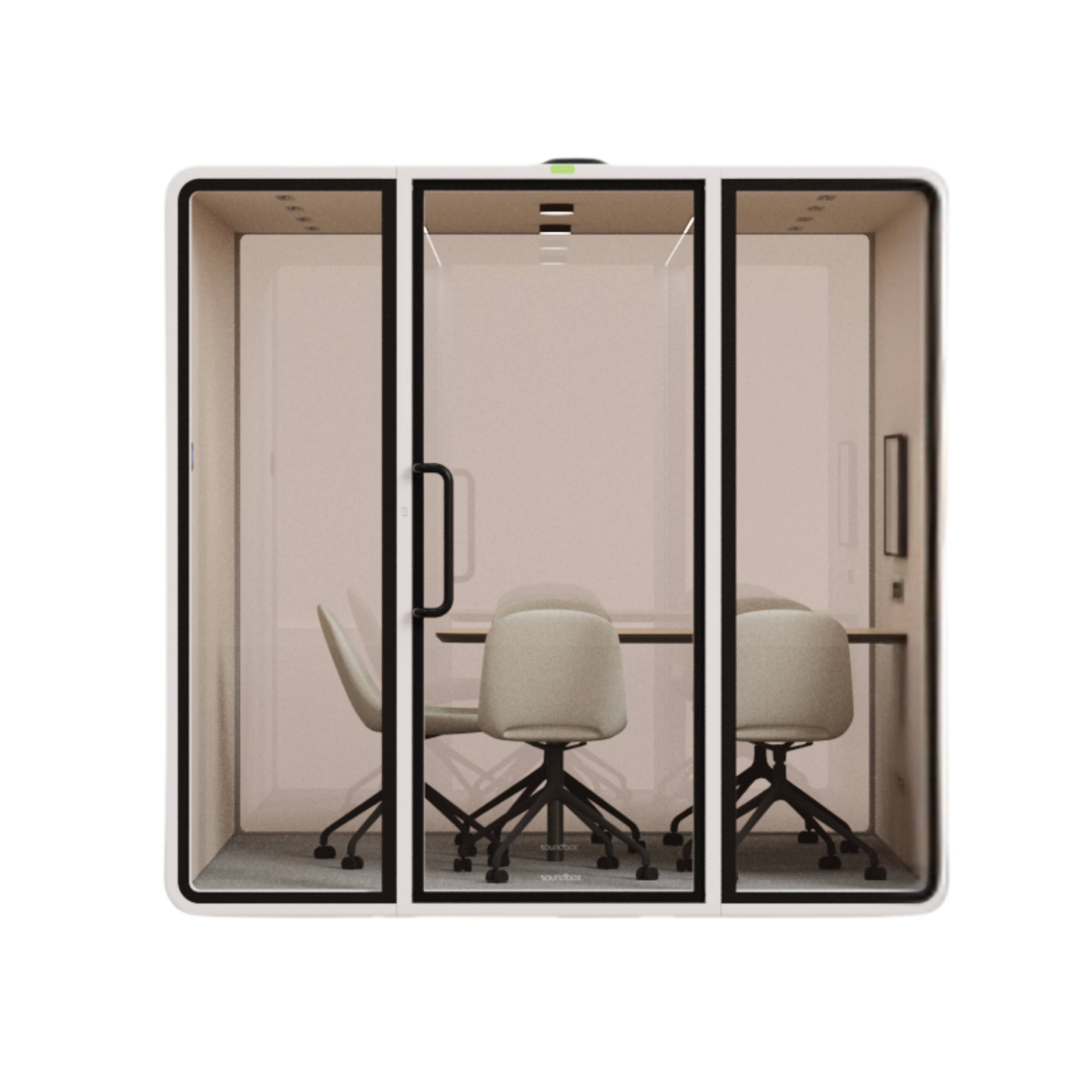תא אקוסטי VRT XL הוא תא אקוסטי חכם המשמש כתא מפגש קבוצתי (עד 6 אנשים) עבור שיחות ועבודה ממוקדת בתוך החלל הכללי. התא מספק הפחתת רעש של כ-30 dB ומאפשר יצירת סביבה שקטה ופרטית עבור המשתמש. התא מתוכנן בגישה מינימליסטית מוקפדת, המבנה בעל הפינות המעוגלות יוצר מראה נקי ומדויק המשתלב באופן טבעי בכל חלל. התא קומפקטי אך אינו צפוף, באמצעות חומרי גמר בהירים וטקסטורות מאוזנות, והשילוב בין משטחים אטומים ושקופים יוצר איזון בין פרטיות אקוסטית לבין קשר ויזואלי לסביבה. חלל הפנים בעל מערכת אוורור מתקדמת המייצרת זרימת אוויר רציפה, מאפשר עבודה נוחה לאורך זמן. הריהוט הארגונומי מותאם למשתמש יחיד ,תוך שמירה על נוחות ופוקוס.