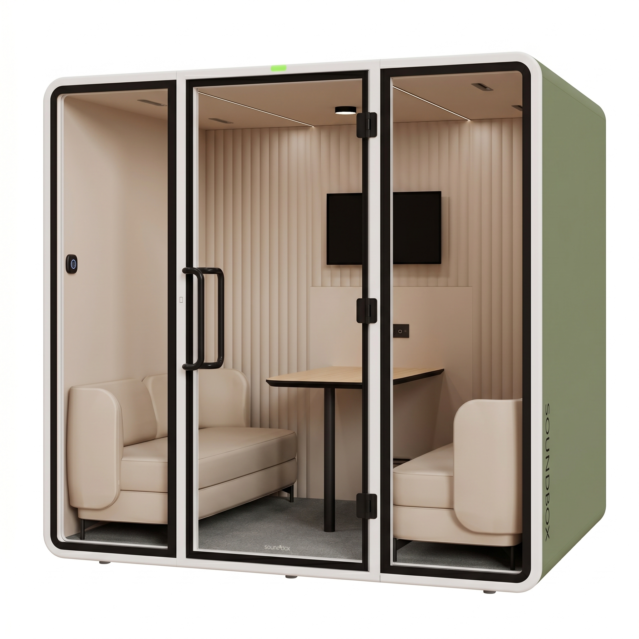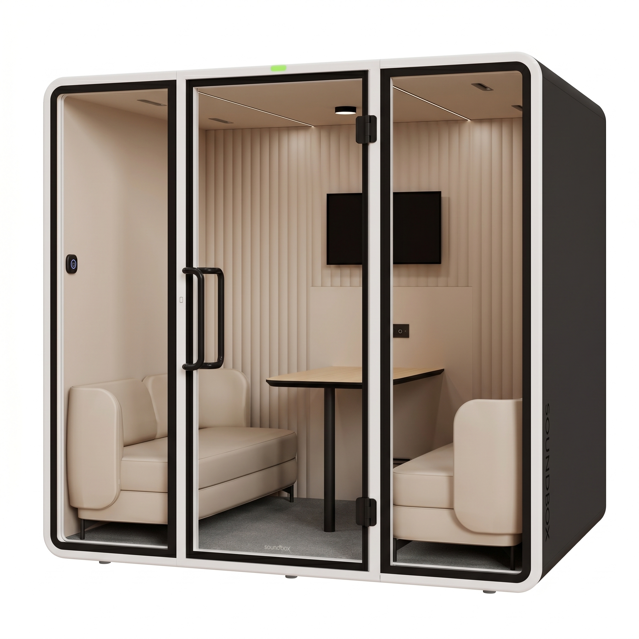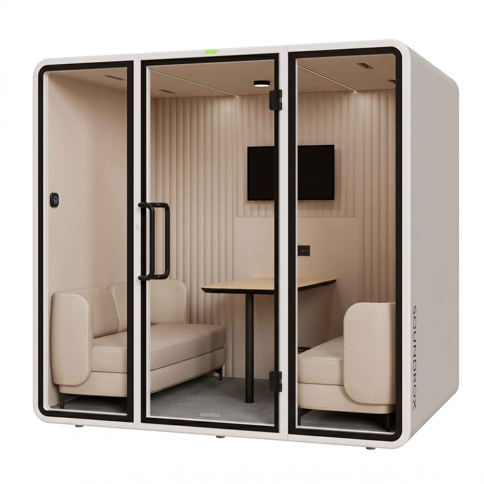 תא אקוסטי VRT plus ML הוא תא אקוסטי חכם המשמש כתא מפגש קבוצתי (עד 4 אנשים) עבור שיחות ועבודה ממוקדת בתוך החלל הכללי. התא מספק הפחתת רעש של כ-30 dB ומאפשר יצירת סביבה שקטה ופרטית עבור המשתמש. התא מתוכנן בגישה מינימליסטית מוקפדת, המבנה בעל הפינות המעוגלות יוצר מראה נקי ומדויק המשתלב באופן טבעי בכל חלל. התא קומפקטי אך אינו צפוף, באמצעות חומרי גמר בהירים וטקסטורות מאוזנות, והשילוב בין משטחים אטומים ושקופים יוצר איזון בין פרטיות אקוסטית לבין קשר ויזואלי לסביבה. חלל הפנים בעל מערכת אוורור מתקדמת המייצרת זרימת אוויר רציפה, מאפשר עבודה נוחה לאורך זמן. הריהוט הארגונומי מותאם למשתמש יחיד ,תוך שמירה על נוחות ופוקוס.