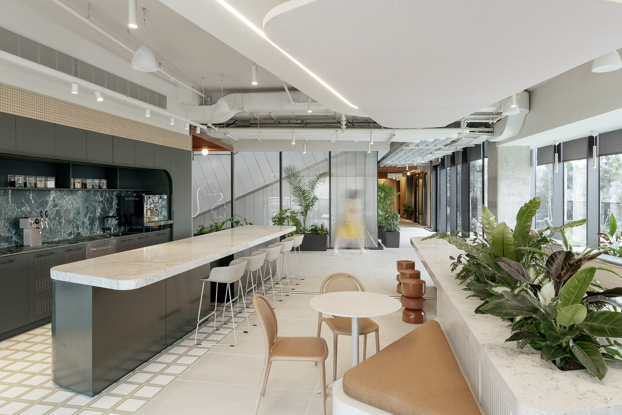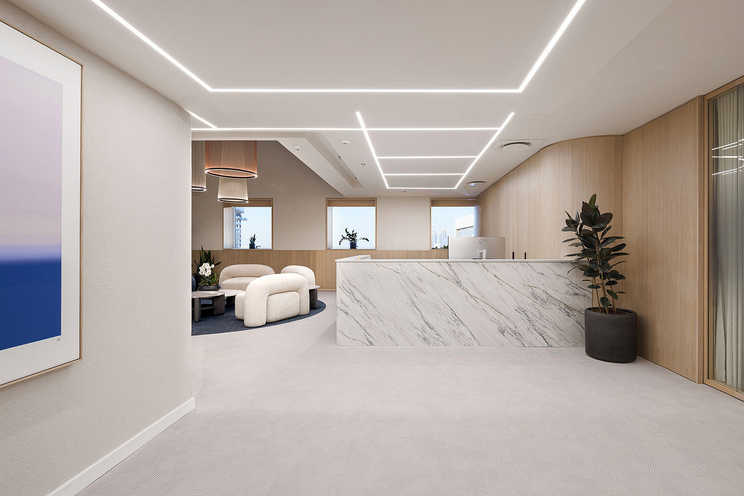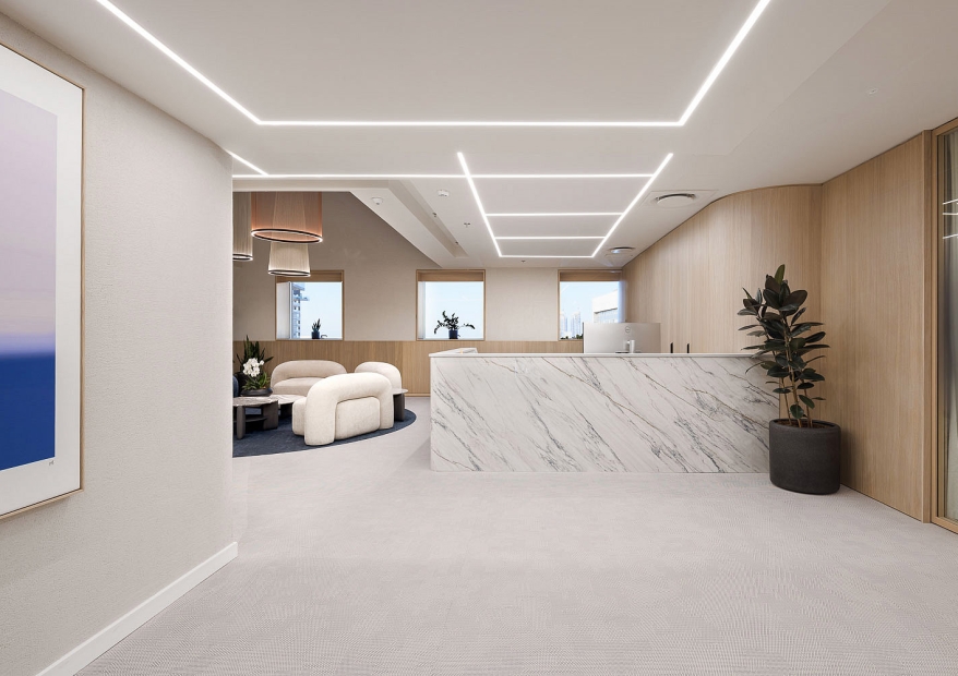 בד מתיחה המייצר מראה של תקרה חלקה ללא תפרים, עם יכולות אקוסטיות גבוהות.