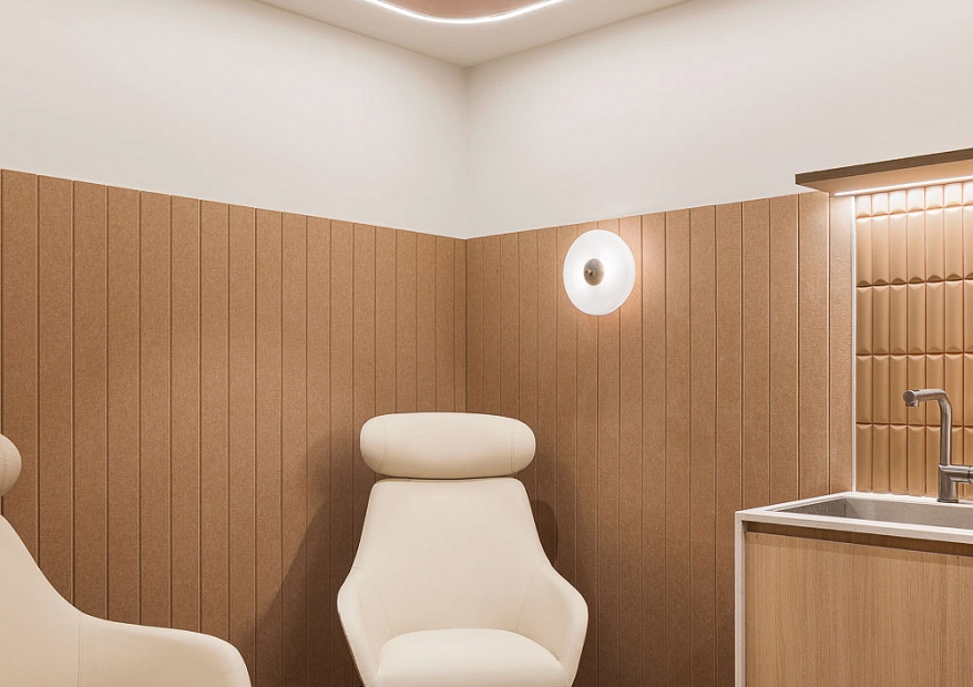 Ecophon Clipso, בד מתיחה ארוג המאפשר לחפות תקרות וקירות בחיפוי מלא, לקבלת מראה חלק וללא תפרים. הבד נמתח ע"י פרופיל המקובע בהיקף החדר. ניתן להזמנה במגוון צבעים