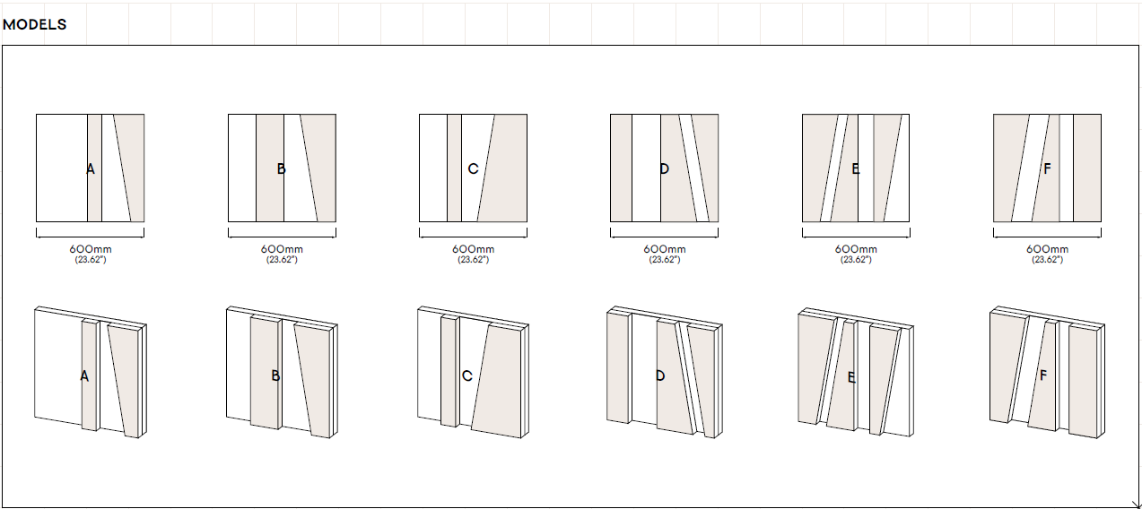 סדרת TRAPEZE – two layers. one calm space מבית Echoshape כוללת לוחות קיר אקוסטיים הבנויים משתי שכבות בעובי כולל של 24 מ״מ. כמות מינימום להזמנה חבילה של 6 יחידות (A–F) בגוון אחד.